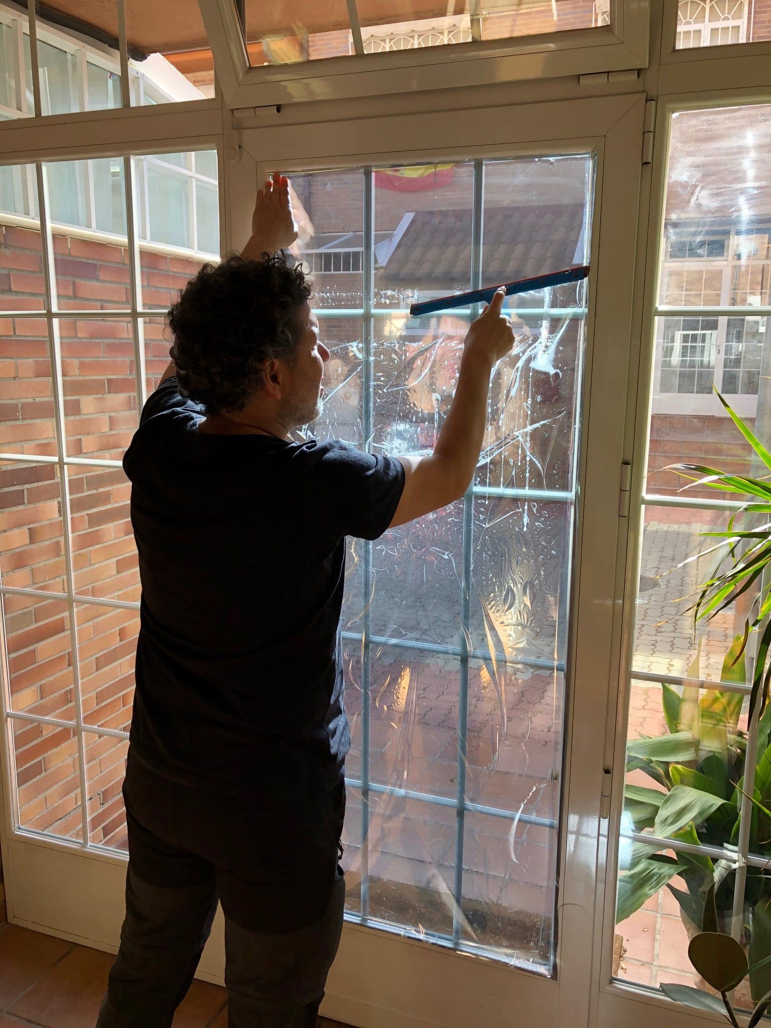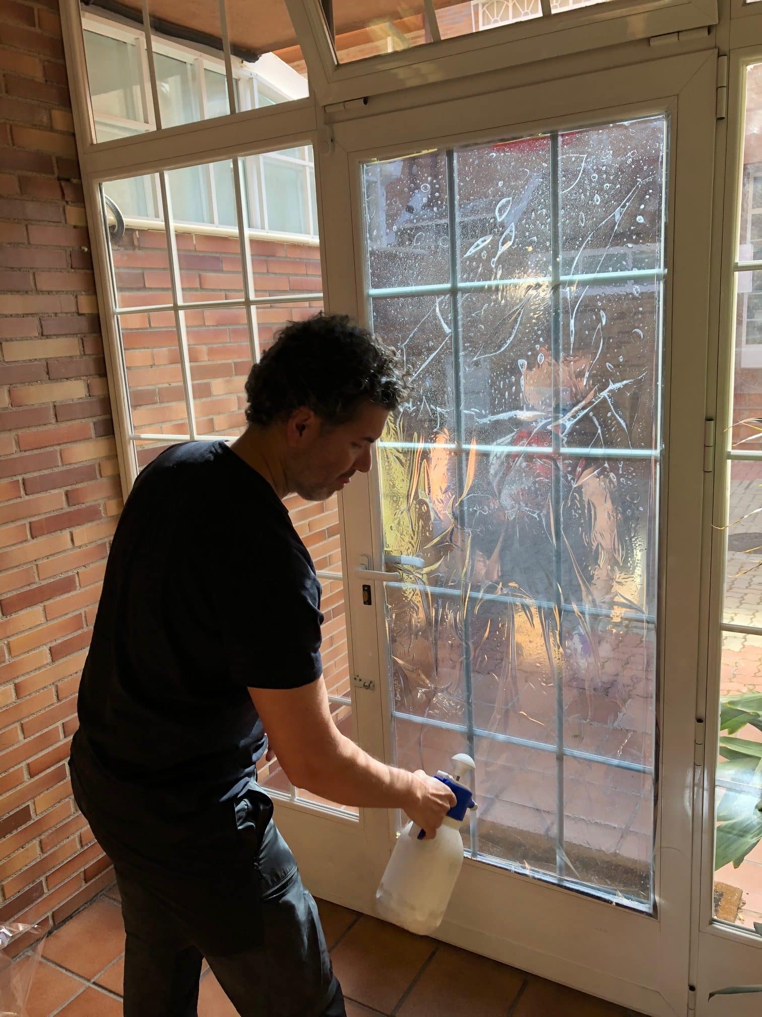 La superficie sobre la que se instalan debe estar perfectamente limpia, sin posibilidad de polvo, pelos o pelusas. Ya que todo lo que se mantenga en el cristal, una vez colocado el vinilo, ahí se queda.